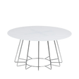 This round white coffee table top is supported by on-trend pin legs in chrome, creating a truly statement piece. It blends perfectly into modern living room decor.