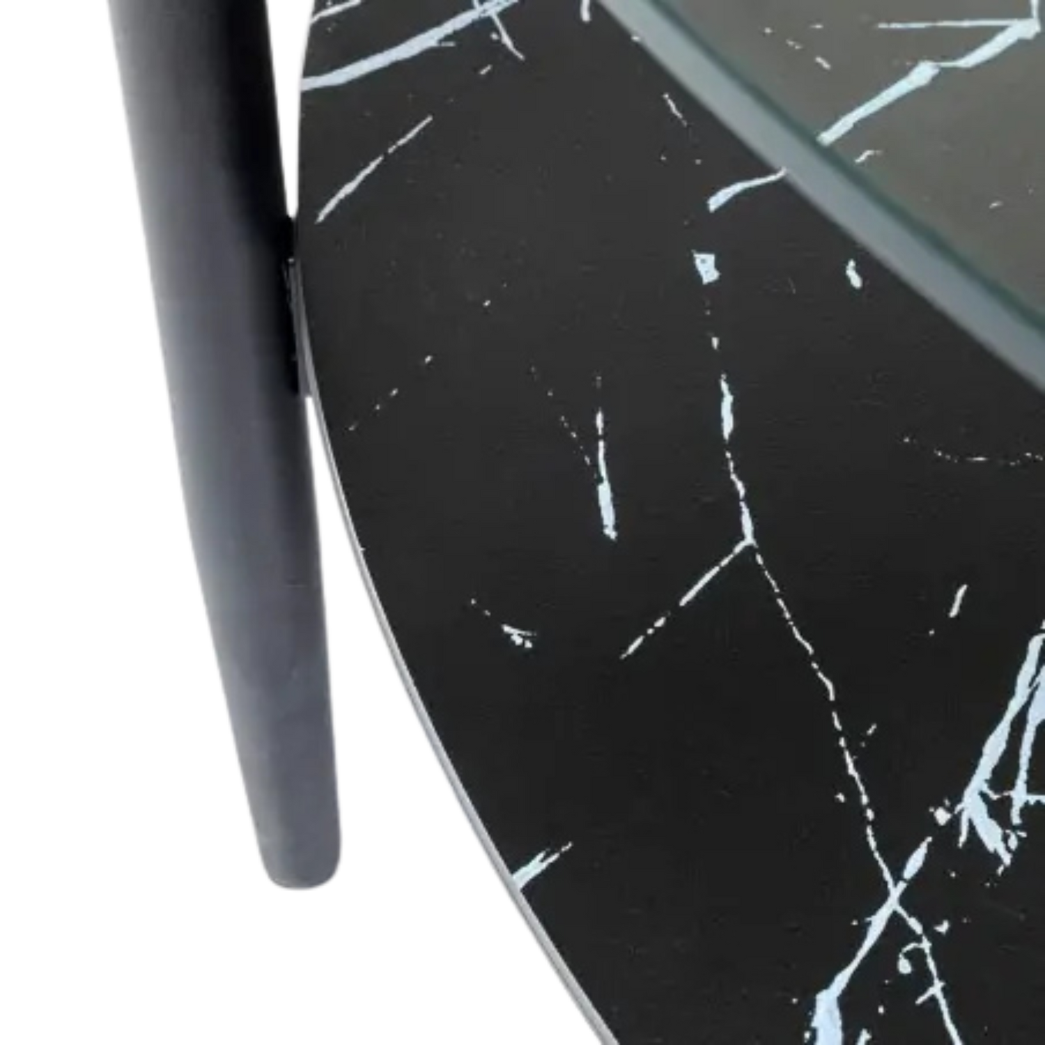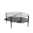 This double-topped coffee table harmoniously brings together no less than 3 materials in entirely contemporary fashion. The piece speaks of softness and lightness thanks to finesse of its steel structure and rounded corners.