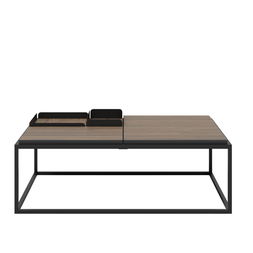 The DOURO coffee table will look great in any living room thanks to its timeless, modern style. We love the sober lines of this table thanks to its black metal legs and adjustable tops. In fact, the 3 tops that make up the table top and the two serving trays are completely modular, so you can use them as serving trays or to store your remote controls and decorations, giving this table a dynamic look! The single tops are bi-coloured, so you can turn them over to give your coffee table a new look. This table will give a modern feel to your living room.