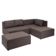 The Infinity corner sofa with ottoman on the right offers maximum versatility. The flexible mobile stool extends the seating area, serves as a footrest, or functions as a side table with a tray. The cozy shade of brown makes it easy to combine and suits every interior style. The hard-wearing cover features pleasantly soft synthetic fiber that's textured and mottled, creating visual interest. Wave-spring suspension and foam padding ensure wonderful seating comfort for hours of relaxation. Thanks to all-round upholstery, this sofa can be placed anywhere in the room.