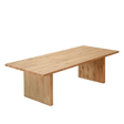 This model of table includes massif solid oak tabletop with thickness of 6cm (3+3cm) optical double. On back of top it has 5 cutting lines for detention and 2-3 U metallic profile applied for resistance.