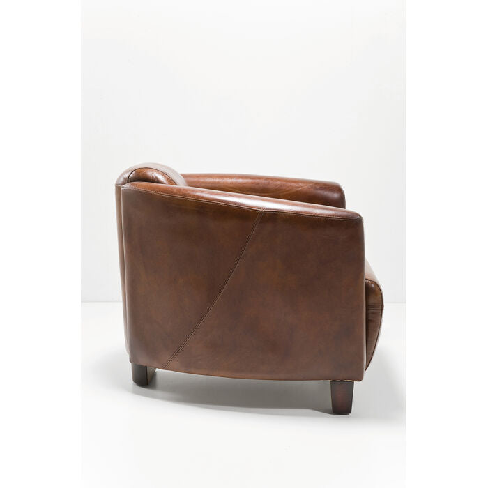 Exclusive armchair in a charming design - Individual leather lounger reminiscent of an Englishman's gentleman's club or a cigar lounge in Cuba. A piece of furniture promising lifelong friendship. Cover made of premium quality top-grain leather in a warm shade of brown. With an elegant gloss. The rounded form not only looks stylish but also ensures pleasant seating. At the same time the robust upholstery guarantees superlative comfort.