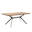 This model of table includes massif solid oak tabletop with thickness of 3.5cm and with edge cut in angle (swiss). On back of top it has 5 cutting lines for detension and 2-3 U metallic profile applied for resistance.
