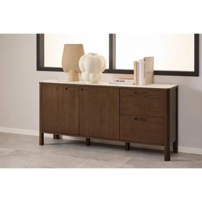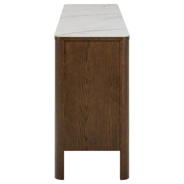 Elevate your interior with the sophisticated Southampton Sideboard, designed to combine modern luxury with practical storage. Featuring a stunning cream Talvera polished ceramic top, this piece delivers a smooth, high-gloss surface with a refined, contemporary look. The elegant live edge detail adds a subtle organic touch, softening the clean lines of the design.