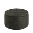 The Retina ottoman brings practical storage hidden beneath tufted olive green top. The button tufting adds elegant texture while the white base creates clean contemporary contrast. Perfect for storing blankets, pillows, or living room essentials while providing comfortable seating or footrest surface.
