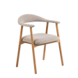 The Addi dining chair with armrest features Monza fabric beige 60 with oiled oak base. This comfortable piece brings natural oak warmth with soft neutral upholstery.