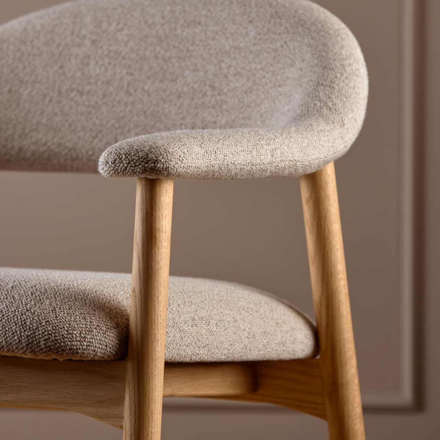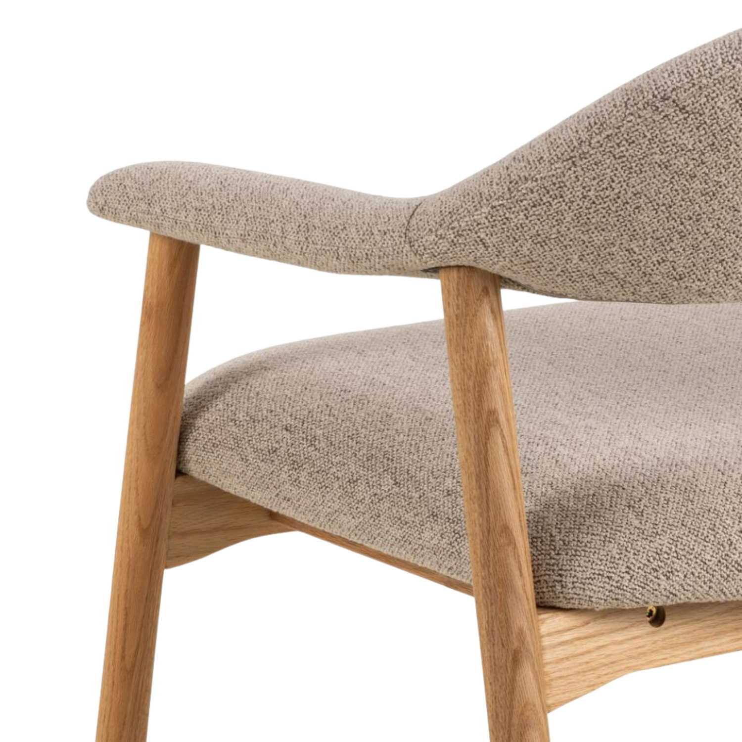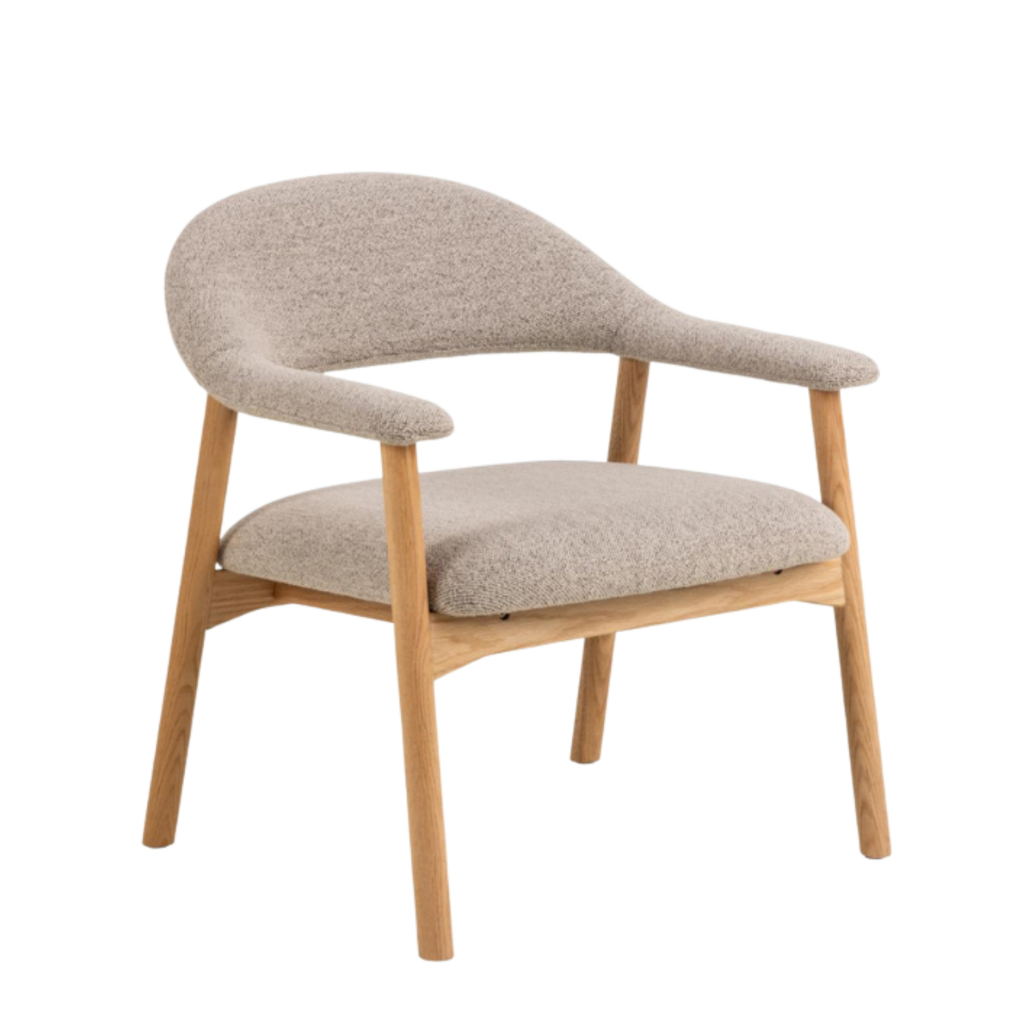 The Addi lounge chair showcases beautiful oiled oak construction paired with soft Monza beige fabric. The natural wood base brings warmth while the neutral upholstery creates versatile styling options perfect for contemporary Scandinavian-inspired interiors.
