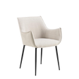 The Bonita dining chair with armrest features Apia fabric beige 453 with matt black rough powder coated steel base. This contemporary piece brings French stitching and zip detailing with armrest comfort.