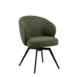 The Darlene dining chair with armrest features Alea fabric green 61 FR with matt black rough powder coated steel base. This premium piece brings 3 fields stitching, auto-return swivel, pocket springs, and zip detailing.