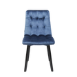 Why be satisfied with less?! The button-stitched blue velvet cover creates luxurious tactile and visual appeal. Straight lines provide contemporary structure while comfortable upholstery ensures pleasant dining. Perfect for spaces seeking regal blue elegance with tufted detailing.