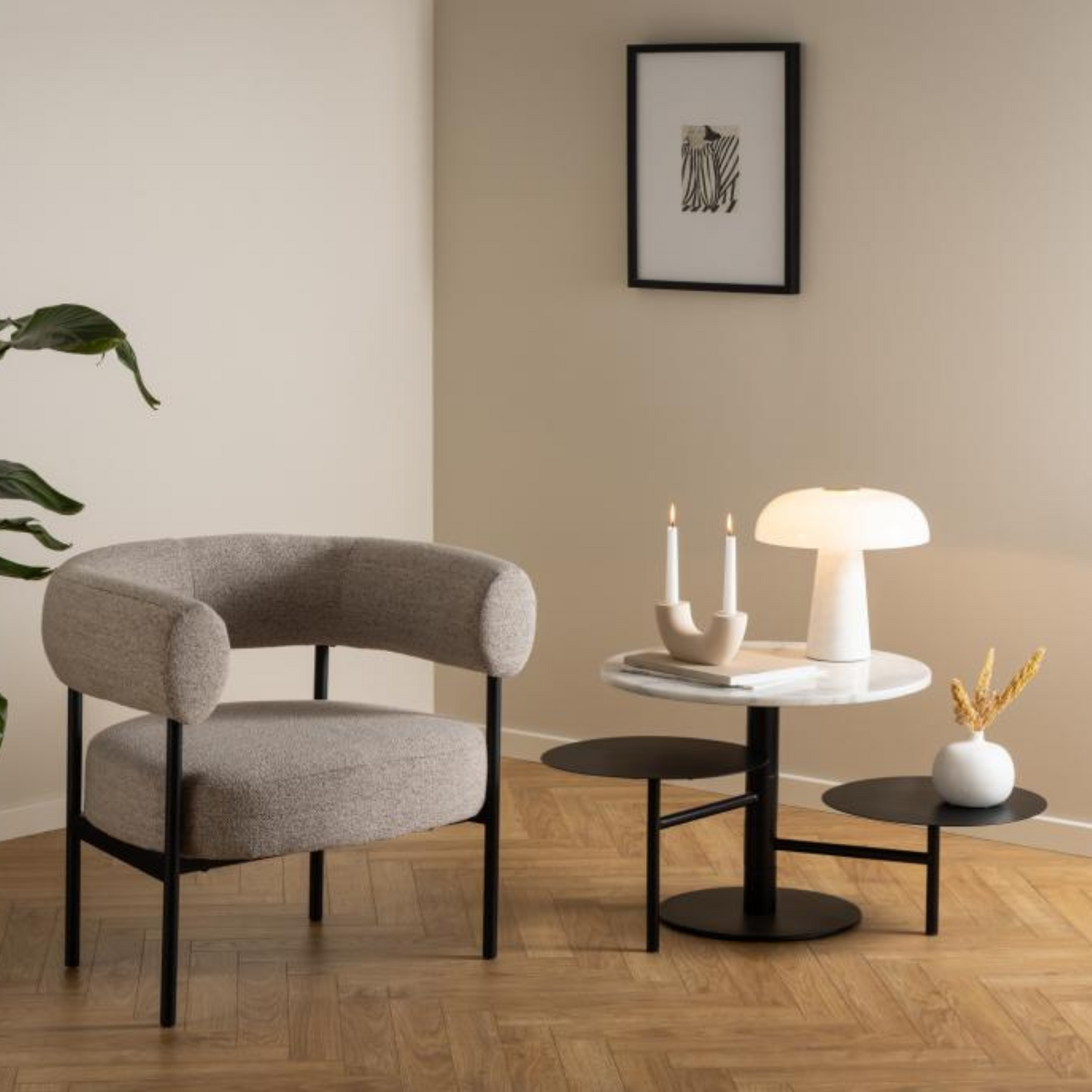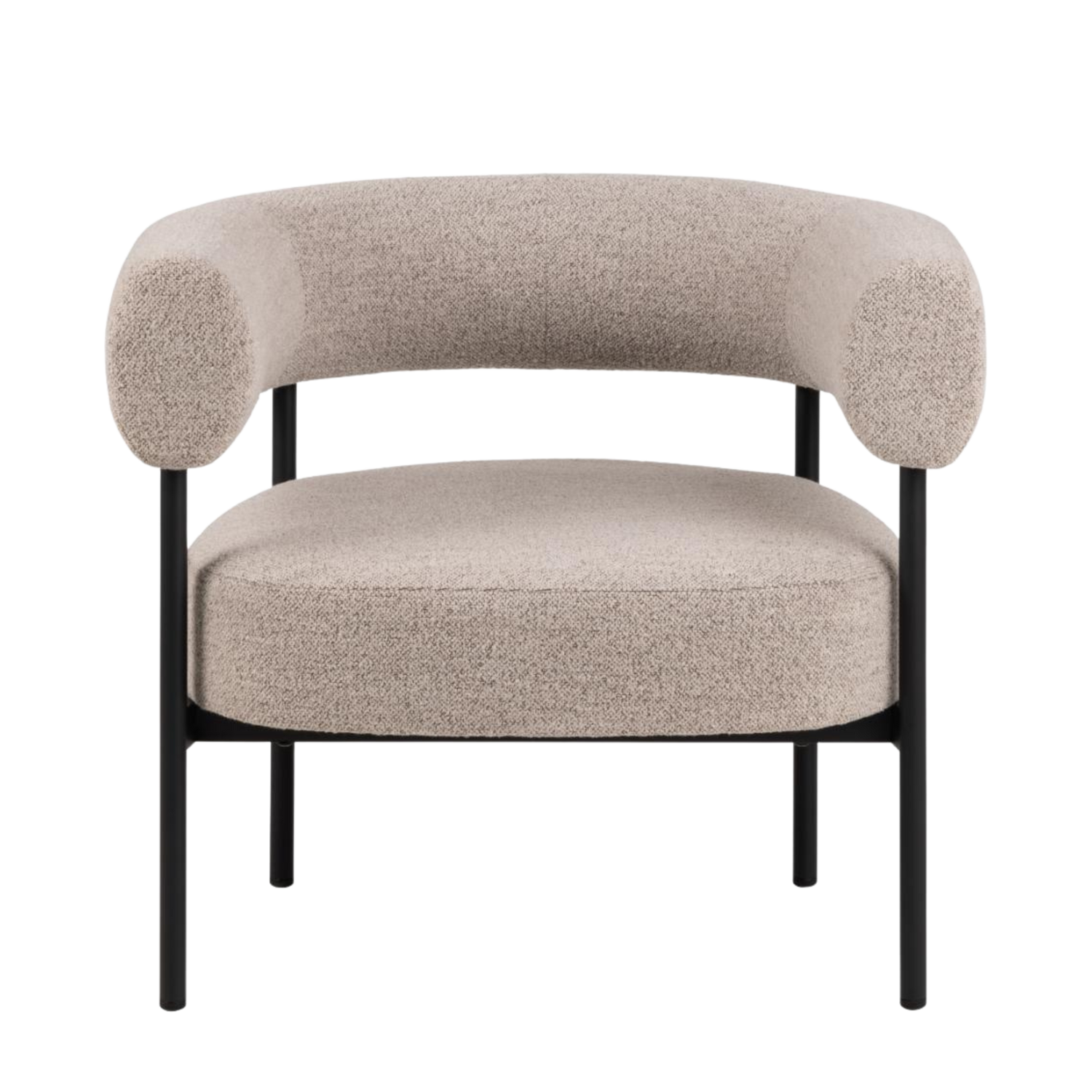 The Oakfield lounge chair delivers superior comfort through pocket spring technology, providing individualized support for lasting comfort. The fire-resistant Monza beige fabric ensures safety without compromising style. The matt black powder-coated steel base adds industrial modern appeal while providing robust support. Perfect for contemporary spaces valuing both comfort and aesthetics.