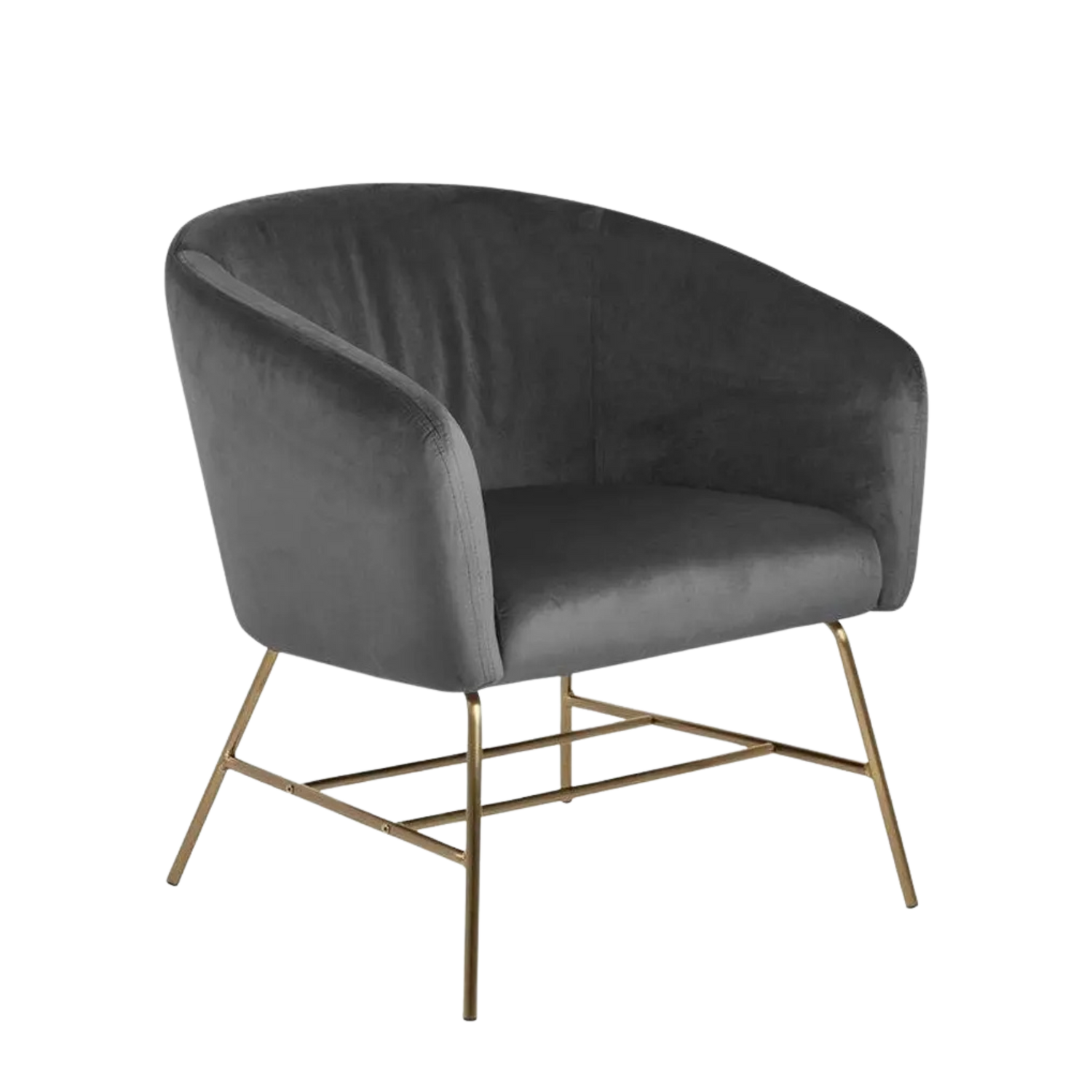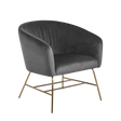 The Ramsey resting chair is a stunning barrel chair in luxurious VIC velvet upholstery with powder-coated golden metal base. Its slender legs and compact proportions make it ideal for modern living.