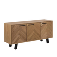 The Brighton sideboard showcases natural oak oiled veneer paired with matt black lacquered oak base creating sophisticated two-tone appeal. The herringbone pattern brings contemporary character while oil finish enhances natural wood grain. Perfect for modern interiors seeking natural oak warmth with dramatic black contrast and herringbone elegance.