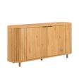 The Colima sideboard showcases wild oak melamine throughout creating cohesive natural appeal with lamella front adding architectural interest. The matt rough finish brings authentic wood character while foil steel base ensures durability. Perfect for contemporary spaces seeking natural oak aesthetics with practical storage and lamella detailing for textural depth.