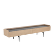 The Connect TV unit brings natural oak beauty through quality veneer paired with black steel legs for industrial accent. The 2 flaps provide organized enclosed storage while maintaining clean lines. At just over 2 meters long, it accommodates the largest entertainment systems with contemporary sophistication.