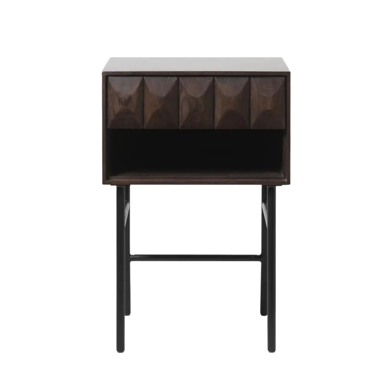 The Latina side table stands as a testament to innovative furniture design, featuring unique patterned fronts created through cutting-edge manufacturing technology. This distinctive piece transforms functional furniture into artistic expression, bringing mid-century modern inspiration into contemporary spaces.
