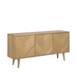 Nagano sideboard features top, frame, and 3 doors in oak UV lacquered veneer with 3 shelves in oak melamine. Base in NC lacquered oak with herringbone and push-to-open function.