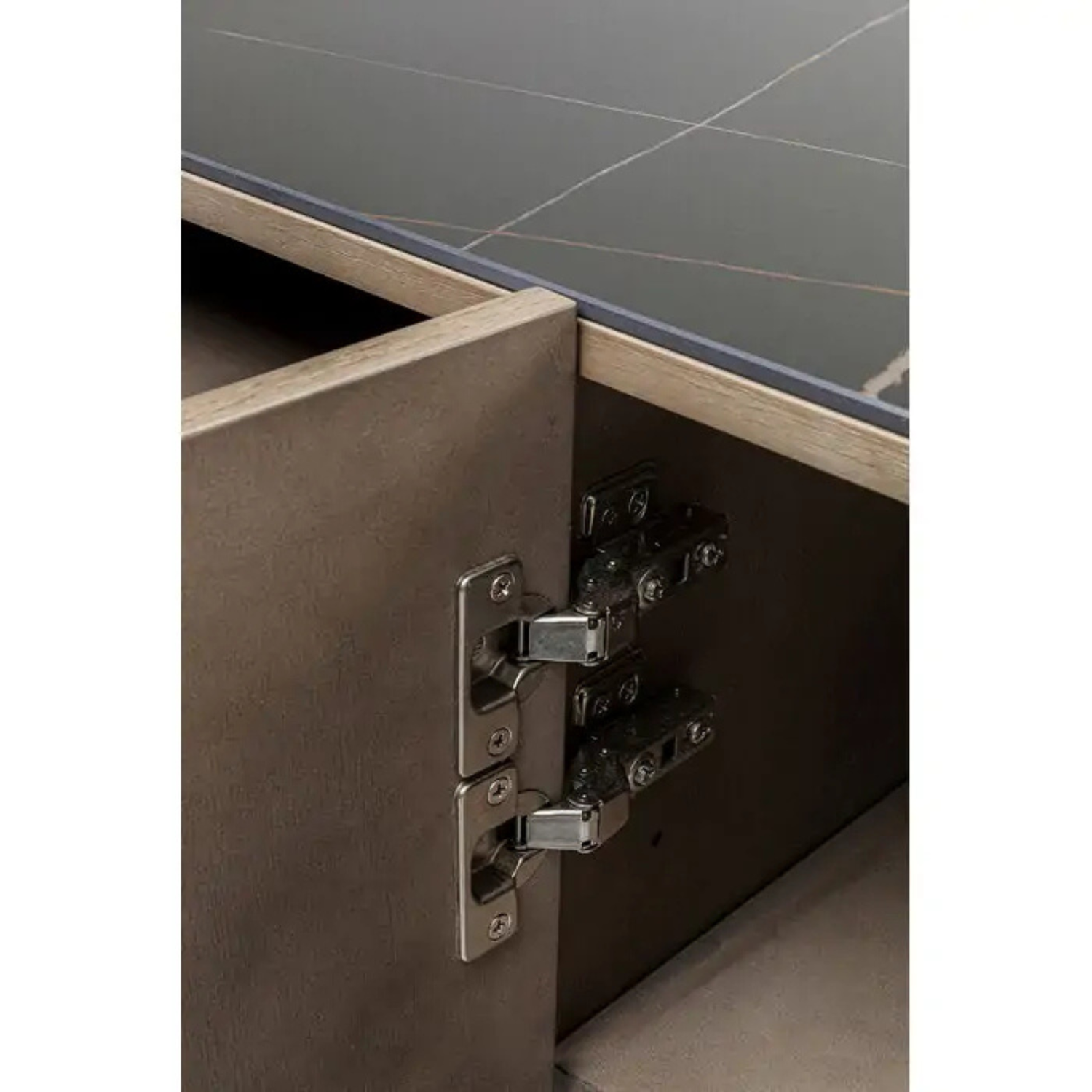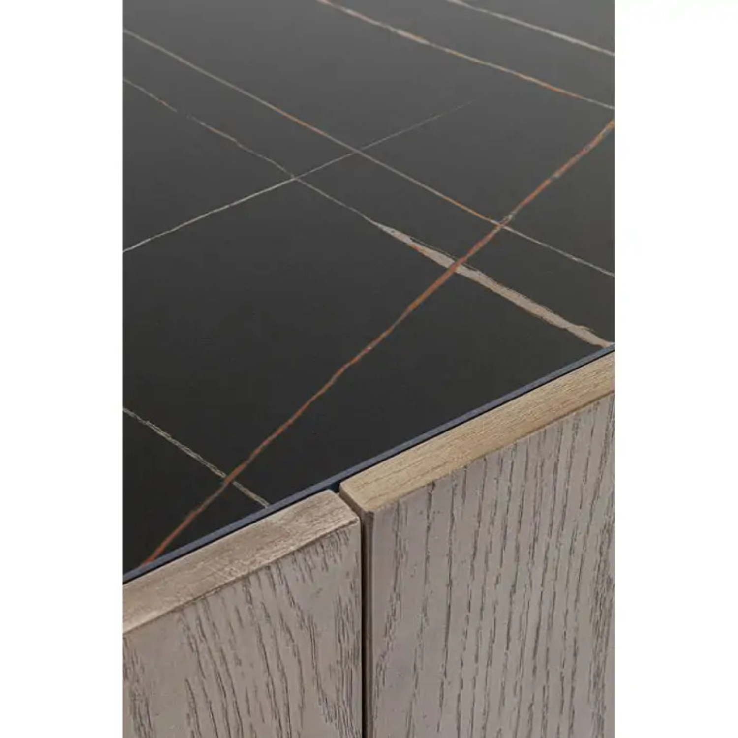 A classically modern designer sideboard with premium details created by furniture designer Andreas Weber exclusively for KARE. The lacquered fronts and side panels are crafted from fine oak wood veneer. The highboard has strikingly beautiful top made of ceramics in earth tones. The handles and frames are finished in brass. The ceramic elements make each sideboard unique - slight deviations from illustration possible. Inner values: two shelves and two drawers make it easy to use as luxurious storage solution. About designer: Andreas Weber has received number of awards for his work. His design vocabulary is emphatically straightforward and striking.