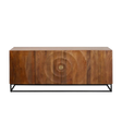 The 4 doors close gently thanks to soft-close function. A high-quality unique piece of handmade furniture. Sculptural front with handcrafted carved patterns creates statement with stunning effect. The solid mango wood brings natural warmth with rich brown tones while black steel frame provides modern industrial contrast. Perfect for spaces seeking handcrafted artistic storage with carved sculptural character and solid wood quality.