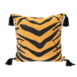 The Sambora cushion cover creates bold dramatic presence perfect for sofas, chairs, or statement displays with black/yellow contrast and tassels bringing striking character ideal for contemporary, eclectic, or bold interiors.