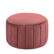 The Doria ottoman showcases coral VIC fabric for bold contemporary appeal. The 60cm diameter provides generous surface while the 40cm height offers comfortable footrest positioning. Perfect for adding energetic color pops to neutral spaces or complementing coral décor themes.
