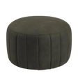 The Doria ottoman in olive green brings natural Preston fabric upholstery with round contemporary styling. This organic-toned piece adds earthy sophistication to interiors.