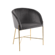 The Nelson armchair perfectly balances form and function. The rich dark grey upholstery paired with glamorous gold finish legs creates a stunning focal point. Compact dimensions make it ideal for apartments or smaller spaces while maintaining elegant presence.
