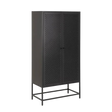 The Newcastle cabinet brings bold industrial character with its Matte black metal construction and mesh detailing. The enclosed storage behind two doors keeps items organized and dust-free while the industrial aesthetic makes a contemporary statement.