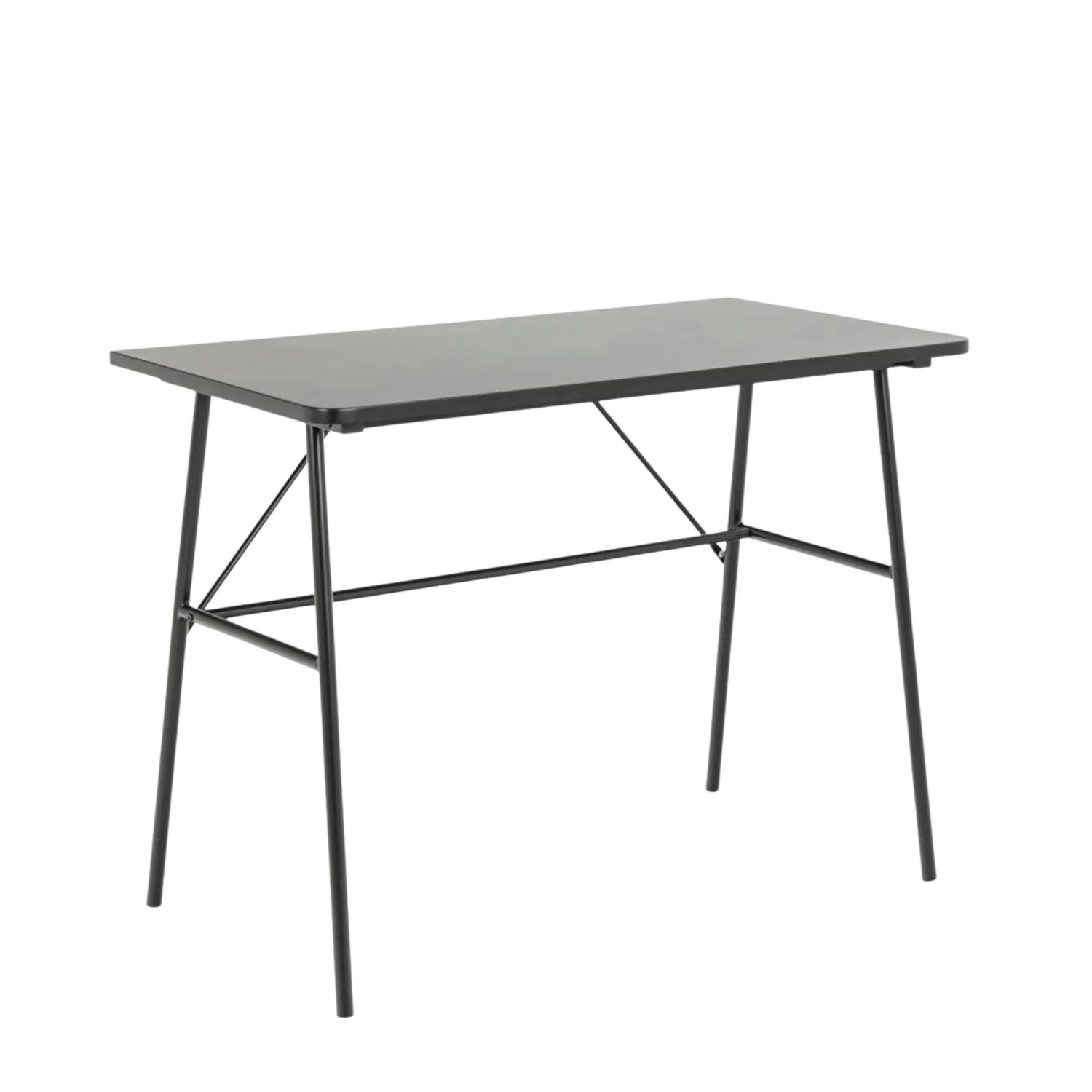 The Pascal desk combines environmental responsibility with contemporary style. Made primarily from recycled wood materials, this desk supports sustainable living without compromising on aesthetics. The matte black finish paired with metal accents creates modern sophistication, while foot caps protect your flooring. Supports UN Sustainable Development Goals 7, 12, and 15.
