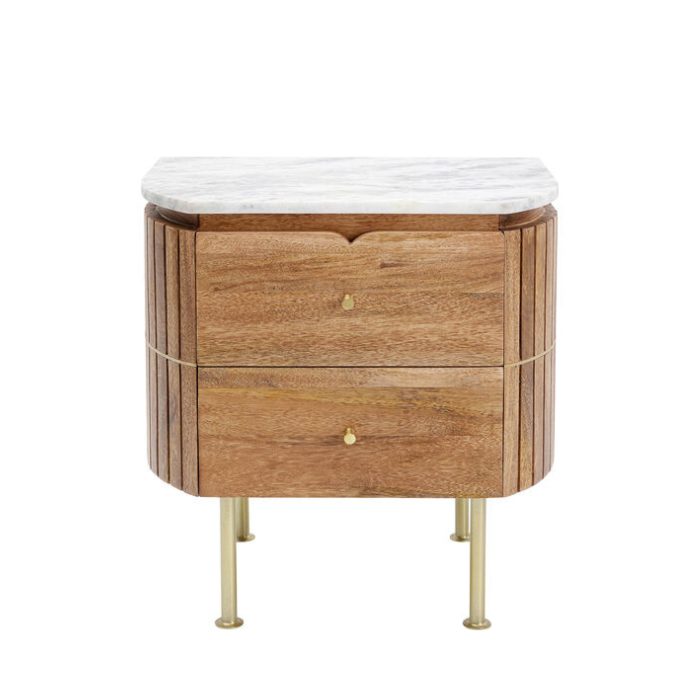 Material: Corpus and fronts: Mango Solid wood Stained-lacquered, Back panel: Medium density fibreboard (MDF) Lacquered, Cover plate: Natural stone Marble, Foot/Base: Steel powder-coated, Drawer: Mango Solid wood Stained-lacquered, Handle: Steel powder-coated, Drawer floor: Medium density fibreboard (MDF) Lacquered, 15 mm Thickness of panel, 20 kg Max. load-carrying capacity, : Adjustable in height, Knocked-down, Partly dismantled, FSC certified, Maintenance and Cleaning: Art. No. 25002 Furniture Cleaner