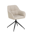 The Brenda dining chair with armrest features Basel fabric beige 24 with 4-star matt black rough powder coated steel base. This functional piece brings square stitching detailing with swivel armrest comfort.