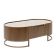 The Giorgio coffee table radiates harmony with fine walnut wood, natural grain and oval shape. The dark glass top adds modernity giving design luxurious feel.