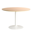 Bringing luxurious focal point to dining area with its round natural oak table top and white metal pillar base. The blend of these materials gives high-end yet homely feel.